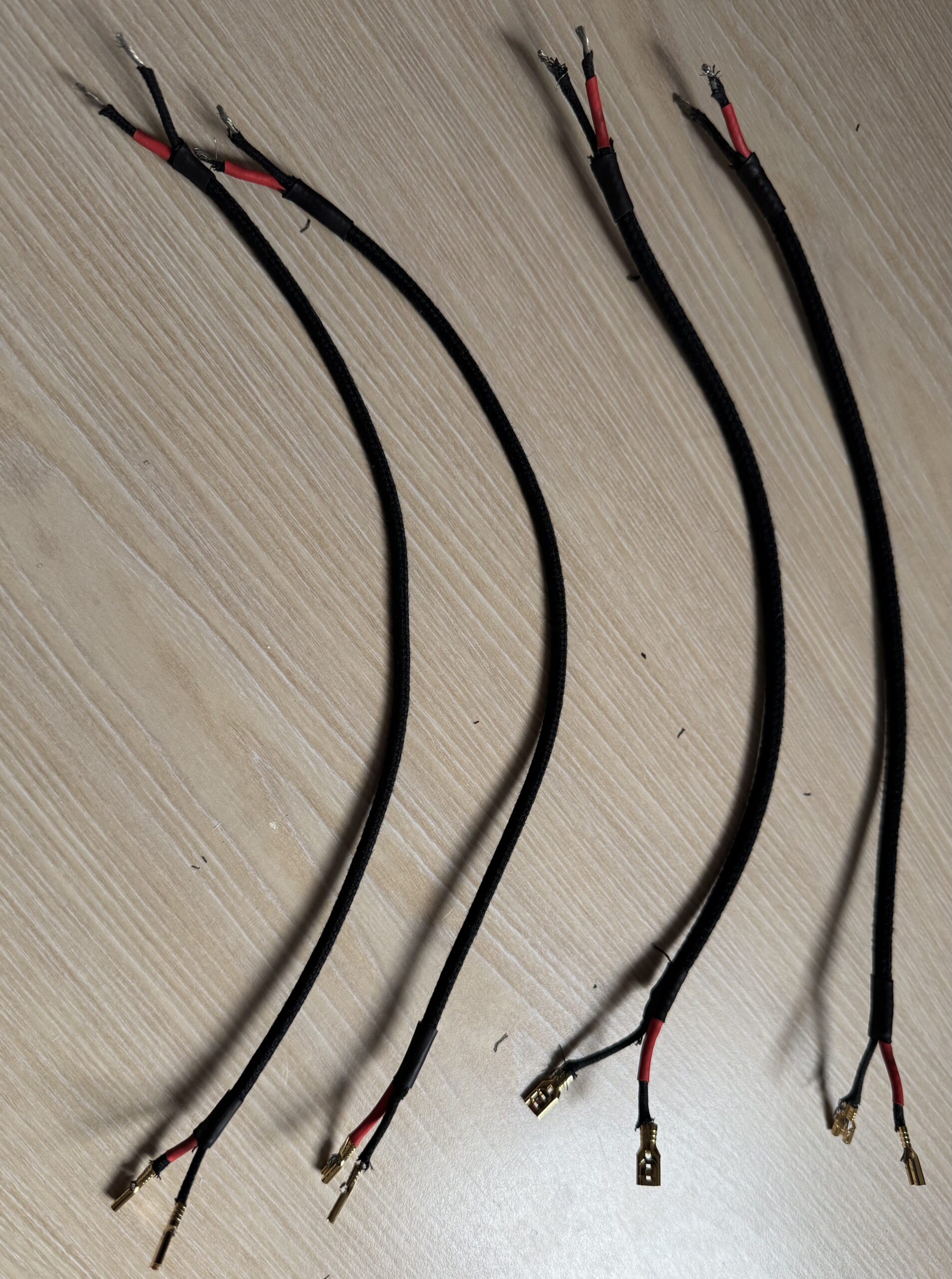 There are some key things to remember. The thinner (20AWG) gauge cable is used for the tweeter, the thicker (16AWG) for the woofer. They are not coloured internally, so use the red heat shrink to mark 1 wire as the positive (+) side at both ends using the flat cable as a reference. You can verify this by using a multimeter in continuity mode.