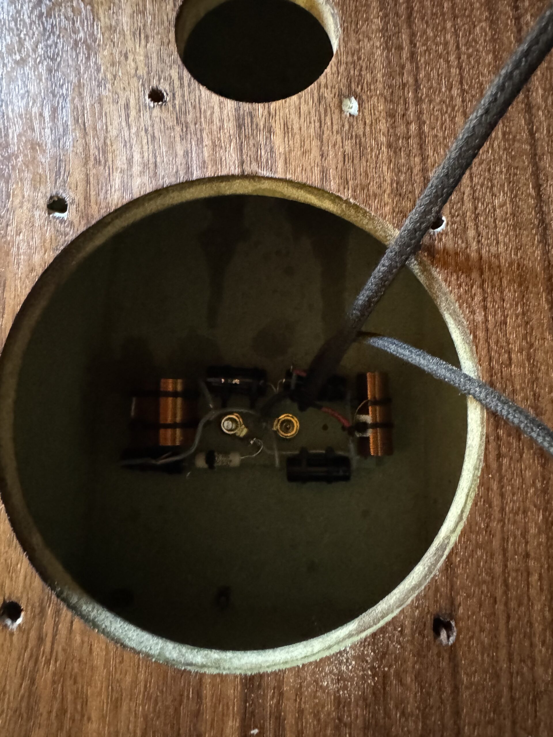 The wire is the Duelund DCA16GA (bass) and DCA20GA (tweeter) – A wire “born of the desire to improve upon legendary vintage Western Electric WE16GA cable, but using Duelund’s philosophy of uncompromising craftsmanship and construction, sonic splendour, palpability and transparency.” It is a Tinned copper multistrand wire in a black cotton and oil dielectric and apparently is recognised among enthusiasts as the “go-to wire for “REAL” sound.”