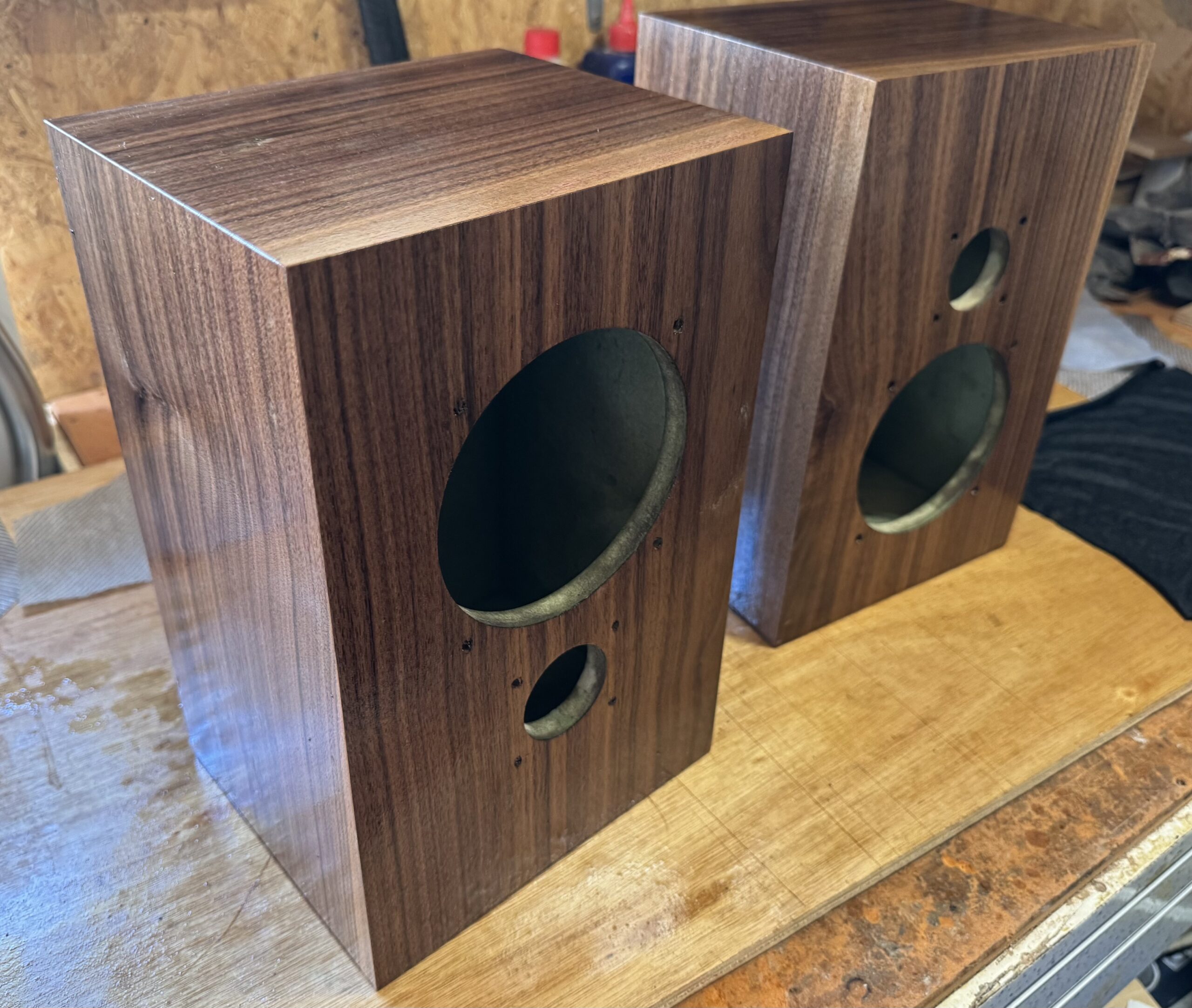 They’re relatively flat through the high frequencies, particularly through the crossover point which is well chosen and inaudible to my ear. They’re a sweet-sounding, detailed loudspeaker that are happy to play loud without apparent strain or distortion. I think you’d have to spend considerably more than their modest asking price to better them, even taking into account the time investment required to finish them to the standard they deserve.
