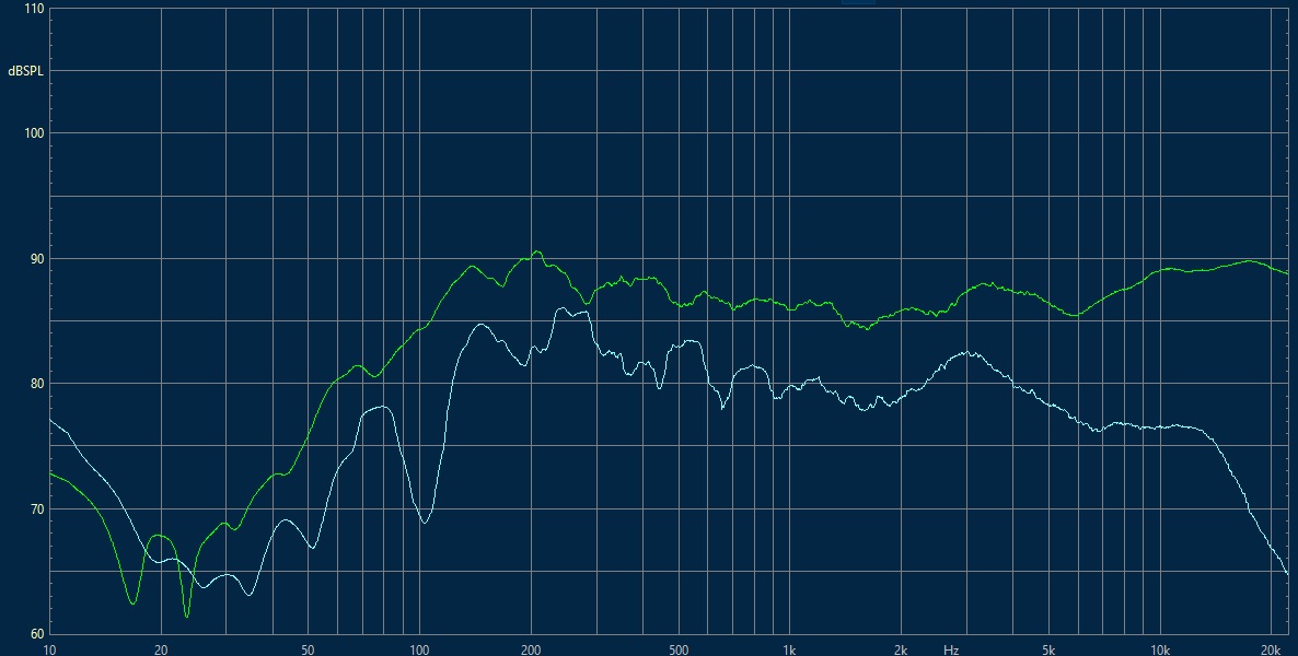 F3 of this speaker appears to be around 60Hz. F3 is the point where the bass is rolled off -3dB from flat, or an average SPL. Average sensitivity is around 87dB and there don’t appear to be any difficult impedance dips so far as my limited equipment can analyse, so these are a relatively easy load.